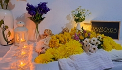 Bạn nên mua một vài bông hoa cúc, 1 vài món đồ chơi, đồ ăn chó thích, hương. Sau đó đặt bên cạnh chúng. Bạn nên nhờ nhân viên của dịch vụ hỏa táng chó mèo, hương khói, cầu cúng trước và sau khi thực hiện hỏa táng. Những đồ dùng như hoa, thức ăn có thể hỏa táng cùng. Bởi nó không gây ô nhiễm như những món đồ chơi bằng cao su, nhựa.