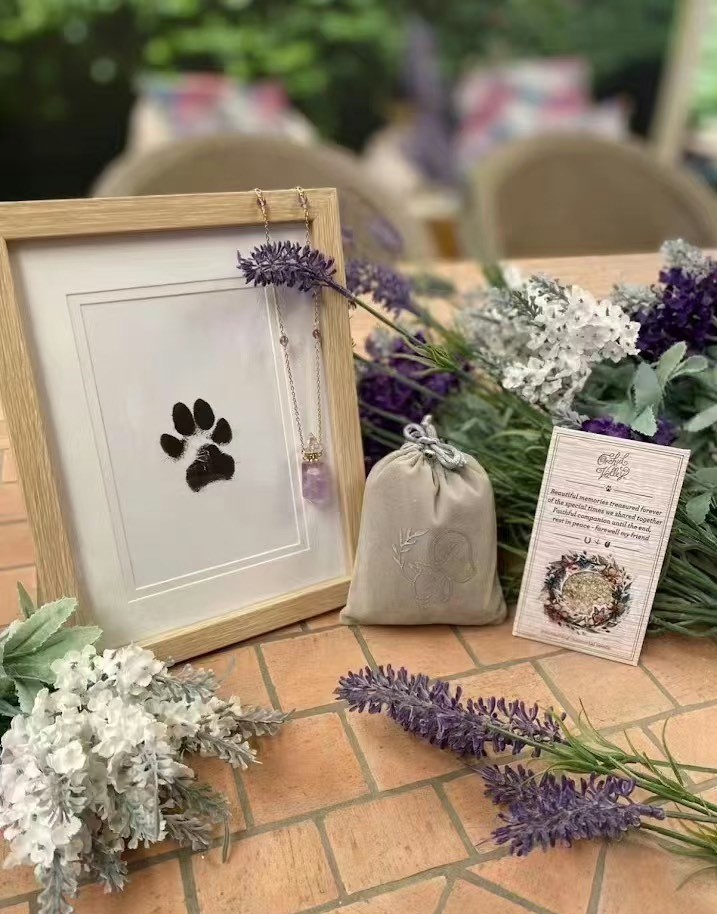 Bước 4: Nhân viên sẽ in dấu chân thú cưng vào giấy chứng nhận, lưu giữ lông móng thú cưng vào lọ thủy tinh, quay video, chụp ảnh để lưu lại những kỷ niệm đẹp nhất cuối cùng của thú cưng để gửi cho khách hàng.